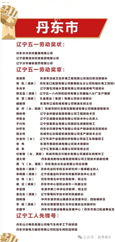 【喜報】遼寧超粵激光科技集團(tuán)有限公司榮獲“遼寧五一勞動獎狀”榮譽(yù)稱號